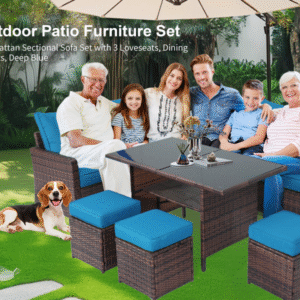 Transform any backyard into a cozy retreat. Whether morning coffee or afternoon reading, the flexible seating arrangement adapts to your space. UV-resistant materials maintain vibrant blue hues beside gardens or terraces. Experience resort-like comfort steps from your door.