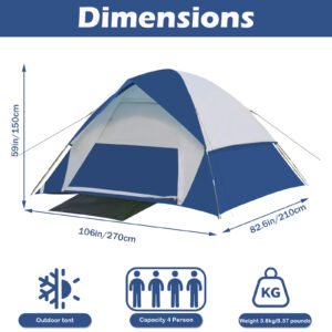 Be the first to review “Four-person dome-shaped pole tent with double canopy” Cancel reply