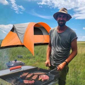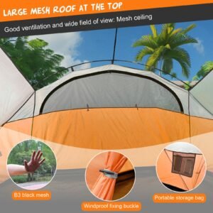 This multi – person tent features a two – room, one – hall design, offering ample space for family or group camping. With 14 ground nails, it ensures a stable setup on various terrains. The grey B3 mesh not only provides good ventilation but also keeps insects out, allowing you to enjoy a fresh and bug – free environment inside. Six 2.5 – meter wind ropes enhance its wind – resistance, making it suitable for different weather conditions. Its practical layout and multiple protective features make it an excellent choice for outdoor enthusiasts seeking comfort and convenience during camping trips.
